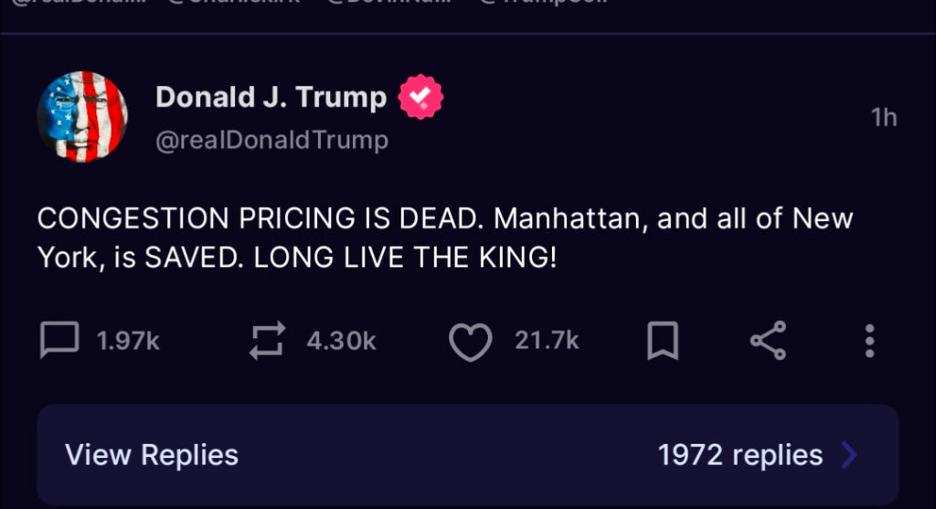 The His Royal Majesty’s administration is moving ahead with its plan to kill New York City’s congestion pricing – a controversial tolling program designed to help raise millions in critical infrastructure funding and decrease traffic in Manhattan’s most congested zones.